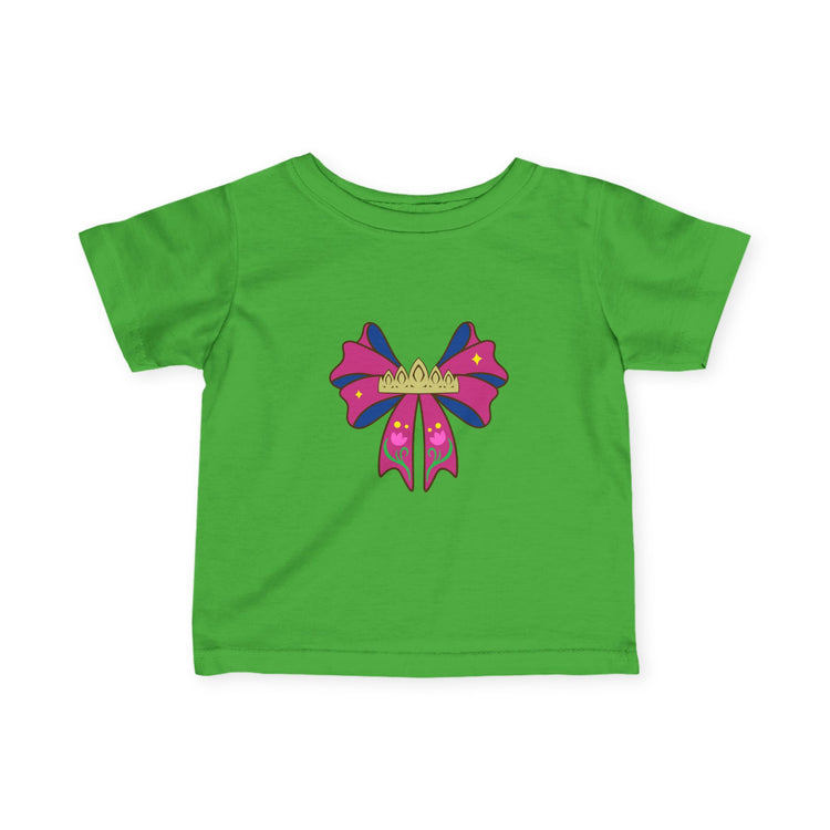 Looking for the perfect outfit for your mini Frozen fan? Look no further than the Anna Bow Infant Jersey T-Shirt from Fandom-Made.com! Show your love for fandom every day with this cute and stylish shirt, inspired by the iconic character Anna. Available in sizes 6M to 24M, this t-shirt is a great way to introduce your little one to the world of fandom.