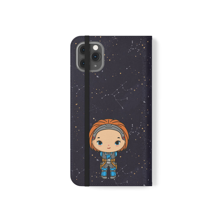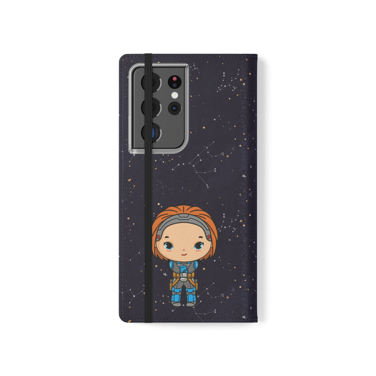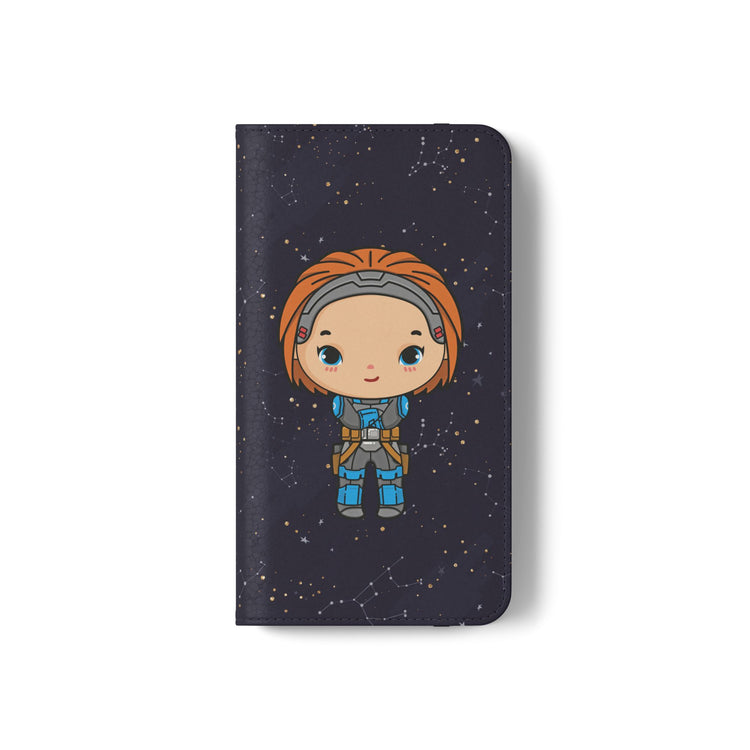 Calling all fans of The Mandalorian! Elevate your phone game with our Bo Katan flip case. Featuring a cute chibi of Katee Sackhoff as Bo-Katan Kryze, this case is a must-have for any true fan. Show your love for the show and fandom every time you use your phone.