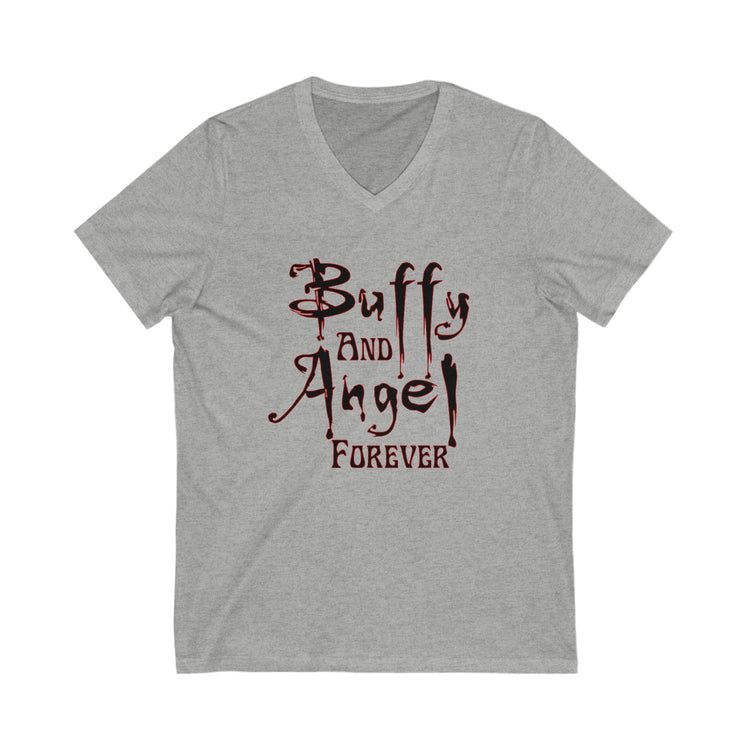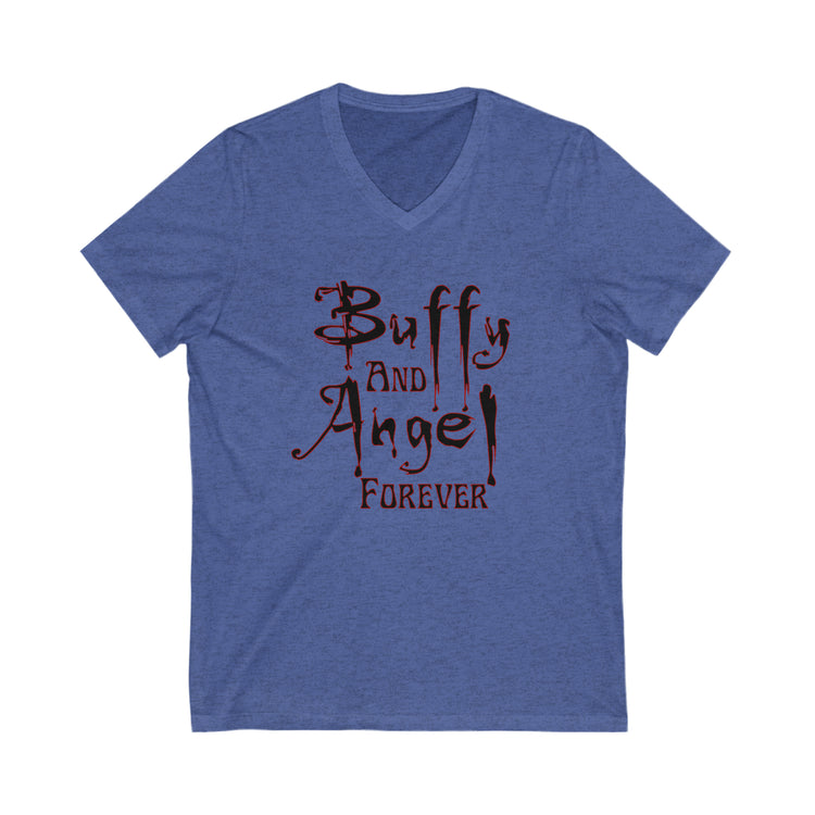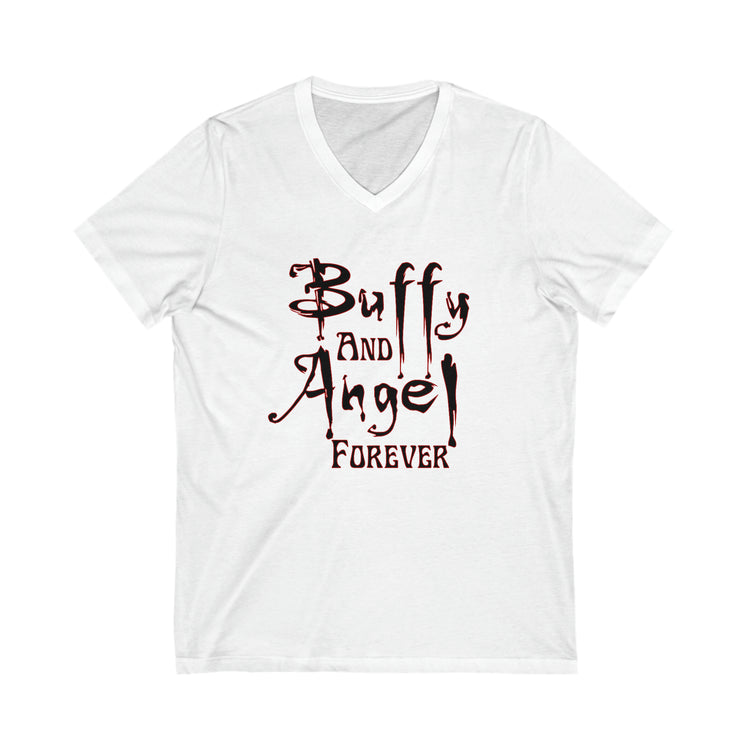 Looking good on both men and women, our Buffy The Vampire Slayer, Buffy (Sarah Michelle Gellar), and Angel (David Boreanaz) Forever soft jersey tee is comfortable enough to wear all day long.