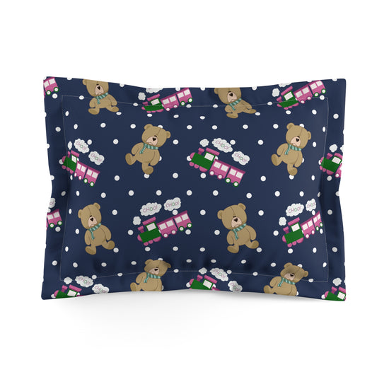 Elevate your bedroom decor with the Choo Choos and Teddy Bears Pillow Sham from Fandom-Made.com. Show your love for the fandom every day with this lightweight woven microfiber sham inspired by Rumi's PJs in KPop Demon Hunters. Available in King or Standard sizes, this pillow sham features an envelope closure for a clean finish. Makes a great gift for fellow fandomaniacs who appreciate the finer details of their favorite shows.