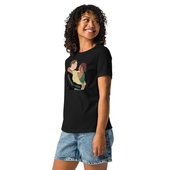 Show off your admiration for Enzo and Bonnie Bennett with the Enzo & Bonnie Women's Relaxed T-Shirt. With its comfortable and lightweight design, this tee is perfect for everyday wear or special occasions. As you slip into this shirt, relish the presence of Michael Malarkey as Enzo and Kat Graham as Bonnie Bennett. Now you can join the ranks of fellow Vampire Diaries enthusiasts and proudly display your fandom in style. Get ready to make heads turn and hearts swoon when you wear this fabulous t-shirt!