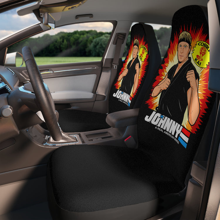 Embrace the warrior within with our GI Johnny car seat covers, a must-have for fans of Cobra Kai and GI Joe. Pay tribute to the iconic William Zabka as Johnny Lawrence, "a true American Sensei", as you hit the road in style. Let your fandom flag fly high and show your love for the Cobra Kai GI Joe mashup with these eye-catching seat covers.