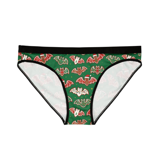 Elevate your underwear game with our Gingerbread Bat Cookies Panties from Fandom-Made.com! Made for true fandomaniacs who want to show their love for their favorite fandom every day, these women's undergarments are available in sizes XS to XL and feature an all-over print of Christmas-themed gingerbread bats. Perfect for those who want to show their goth side while still staying festive, these panties make a great gift for yourself or a fellow fan.