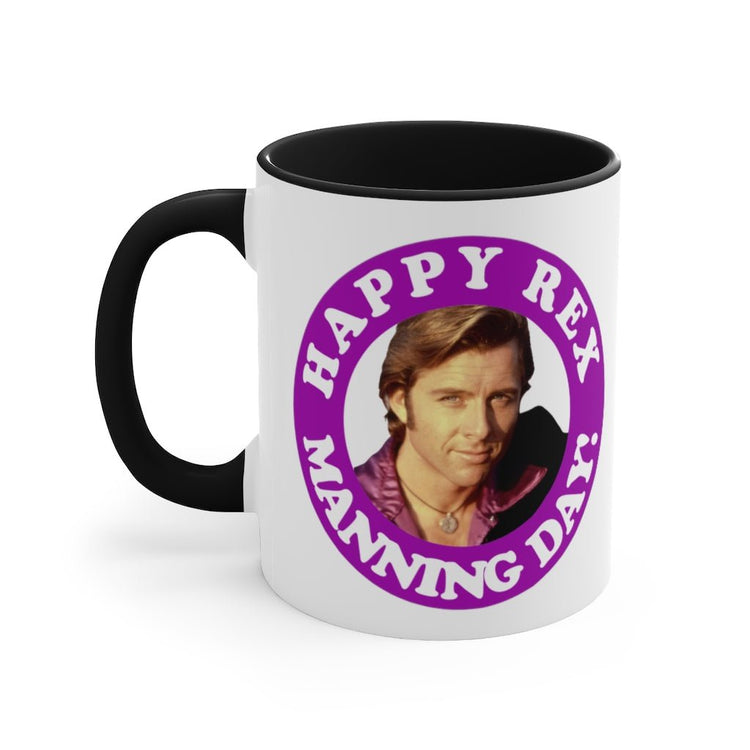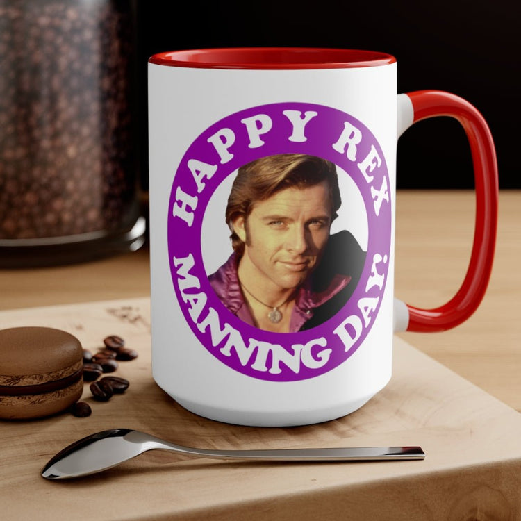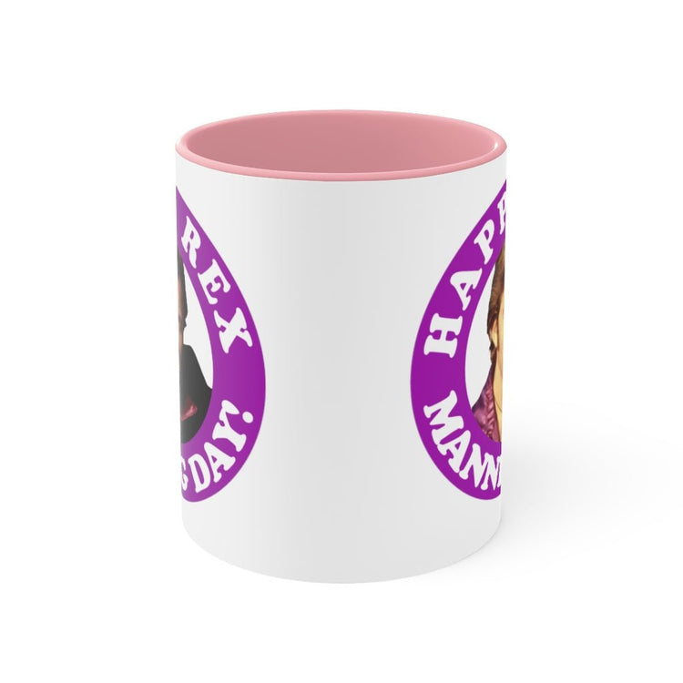 Our Happy Rex Manning (Maxwell Caulfield) Day two-tone mug is here to accommodate all your favorite pick-me-up elixirs in style. Its durable ceramic build is microwave & dishwasher-safe, as is any printing that goes on to these mugs. These Empire Records-inspired dual-color mugs are available in 2x sizes: 11oz and 15oz, as well as in 3x different color schemes: white with red inside, white with pink inside, and white with black inside.