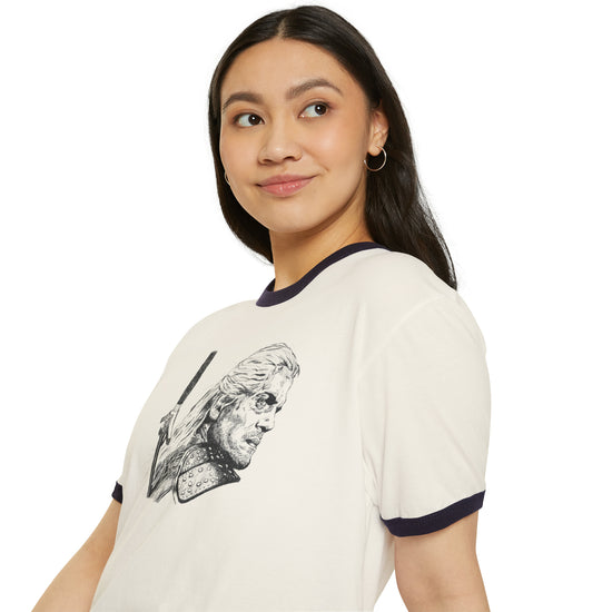 Embrace the world of The Witcher with our Henry Cavill as Geralt of Rivia ringer tee! Let your inner monster slayer shine in style.