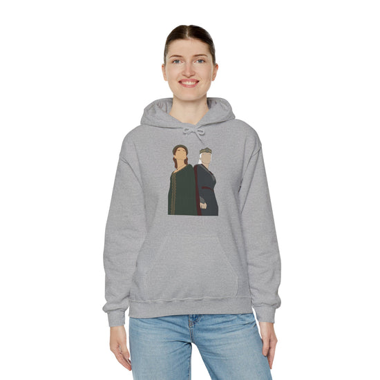 Embrace the epic clash of Hightower Vs Targaryen with our must-have hoodie. This unique design showcases the fierce rivalry of House of the Dragon, with Olivia Cooke and Emma D'Arcy depicted in a minimalist style. Join the fandom and rock your passion for the series with this trendy and cozy hoodie.