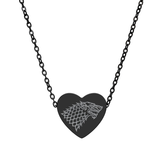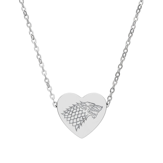 This House Stark Sigil Heart Necklace is the perfect accessory for any Game of Thrones fan. Show your love for the fandom every day with this beautifully crafted necklace, inspired by the House of Stark. The sigil is engraved on the heart, making it a unique and special piece to add to your collection. Makes a great gift for any fandomaniac in your life. Fandom-Made.com - because true fans show their love for fandom every day…