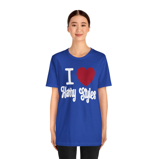 Are you a true Harry Styles fan? Then you need the I Love Harry unisex t-shirt in your collection! Made for those who love to represent their fandom every day, this shirt is a statement piece that shows off your admiration for the man himself. Fandom-Made.com is where fans go to find the best fan gear, so don't miss out on this opportunity to own a piece of Harry Styles history. Makes a great gift for any occasion.