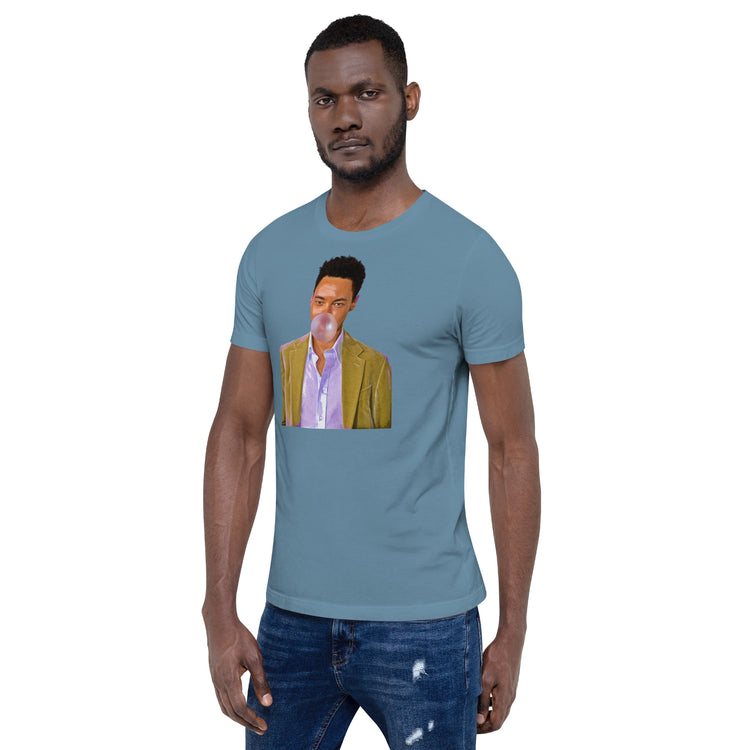 Indulge in the whimsical world of the Bubblegum Collection with our Kit Young Unisex T-Shirt! Featuring Kit Young of Shadow and Bone fame blowing a bubble, this tee is a must-have for fans of the hit series.