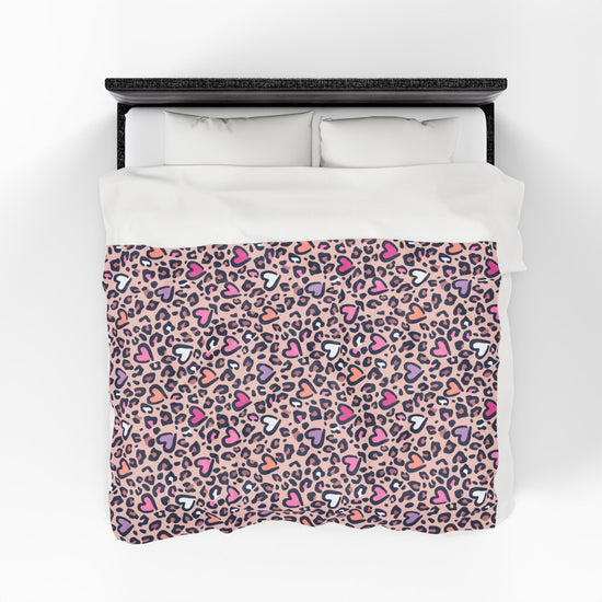 Add a touch of fandom flair to your home with our Leopard Love Velveteen Plush Blanket. Made for true fans who want to showcase their love for fandom every day, this blanket from Fandom-Made.com is the perfect addition to any collection. With its unique design of leopard print mixed with hearts, this blanket is not only stylish but also incredibly soft and comfortable. Available in three sizes, it makes a great gift for any fandom lover in your life.