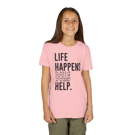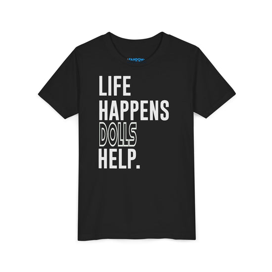 Elevate your little fandomaniac's style with the Life Happens Dolls Help Youth Tee from Fandom-Made.com. Available in sizes S to XL, this kid's t-shirt is perfect for showing off their love for dolls every day. Let everyone know their passion without saying a word - because true fans express themselves through their clothing.