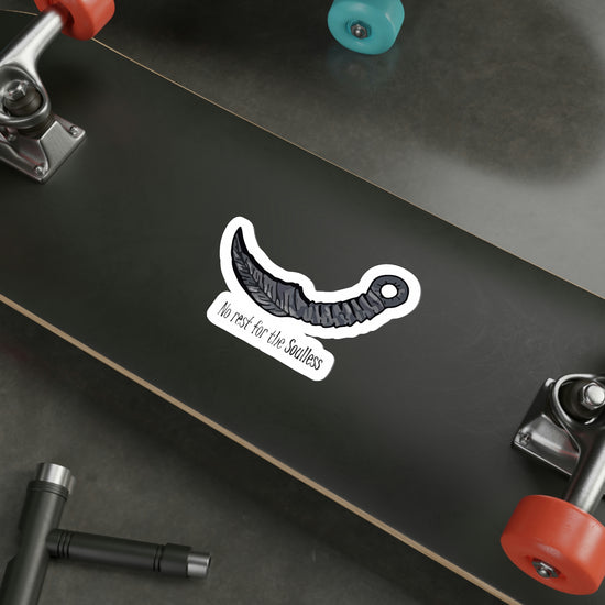 Our Lucifer-inspired, "No Rest For The Soulless," die-cut stickers are great for both indoor and outdoor use as they are made with thick, resistant, laminate vinyl material.