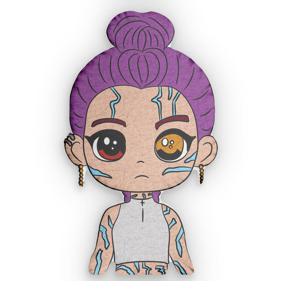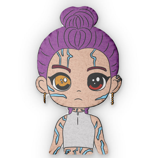 Calling all true fans! Show your love for fandom every day with our Rumi Demon-Shaped Pillow. Handcrafted for the ultimate fangirl or fanboy, this throw pillow is perfect for adding a touch of fandom flair to any room. Available in four sizes, this pillow is inspired by KPop Demon Hunters and features a cute chibi of Rumi with demon markings.