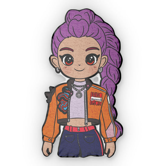 Elevate your comfort and show off your fandom love every day with this adorable Rumi-shaped pillow from Fandom-Made.com. Designed for true fandomaniacs, this throw pillow features a chibi version of Rumi from the hit movie KPop Demon Hunters. Snuggle up with this pillow and let your fandom flag fly high!
