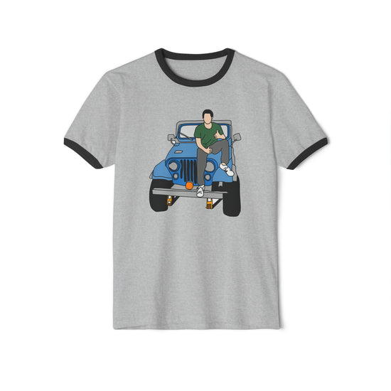 Gear up in style with our Stiles Stilinski and Jeep Ringer T-shirt, a must-have for any Teen Wolf fan. This comfy tee features a cool design of Dylan O'Brien's character Stiles and his iconic jeep, perfect for showing off your love for the show. Get yours today and feel the Teen Wolf vibes wherever you go.