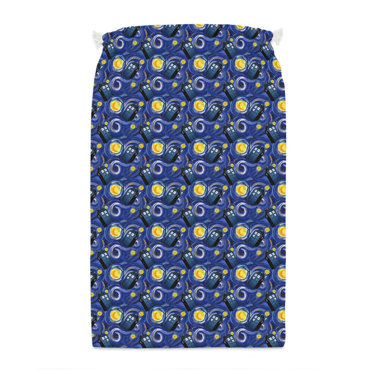 Elevate your gift-giving game with our Tardis Night gift bag. Featuring a Van Goh's Starry Night inspired all-over print, this bag is perfect for the Doctor Who fandomaniacs in your life. Show your love of the show every day with this unique and eye-catching accessory.