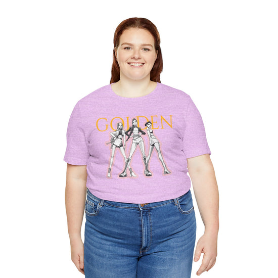 Elevate your fan wardrobe with The Midas Touch Unisex T-Shirt from Fandom-Made.com - because true fans show their love for fandom every day. Made for true fandomaniacs, this lightweight shirt is perfect for showcasing your love for KPop Demon Hunters and the hit song Golden. Available in sizes S to 3XL, this shirt is inspired by the Huntrix song and is a must-have for fans of Zoey (Rei Ami), Rumi (Ejae), and Mira (Audrey Nuna). Upgrade your fandom style and show your dedication to the series with this stylish and versatile tee.