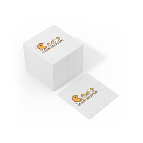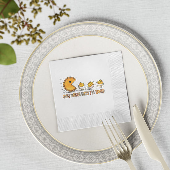 Why settle for plain napkins when you can showcase your love for fandom with You Know Why I'm Here Napkins from Fandom-Made.com? True fans know that expressing their fandom every day is a way of life, and these napkins make it easy to do just that. Whether you're hosting a themed party, gathering with fellow fandomaniacs, or simply adding a pop of excitement to your holiday table, these napkins featuring the playful design of Pac-Man gobbling up deviled eggs are a must-have. Available in two sizes and packs of 50 or 100, these napkins are the perfect way to add a touch of fun to any occasion.