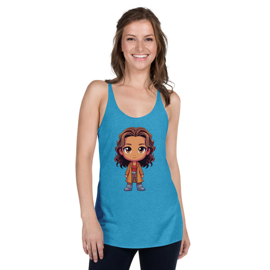 Elevate your daily wardrobe with the Zoë Washburne racerback tank top. This women's tank top is a must-have for all Fandomaniacs who want to show their love for fandom every day. Inspired by the beloved TV fan-favorite series Firefly, this tank features a chibi of Gina Torres as Zoë. Perfect for casual outings or lounging at home, this tank top is both comfortable and stylish. Get yours today and represent your favorite show in a fun and fashionable way.