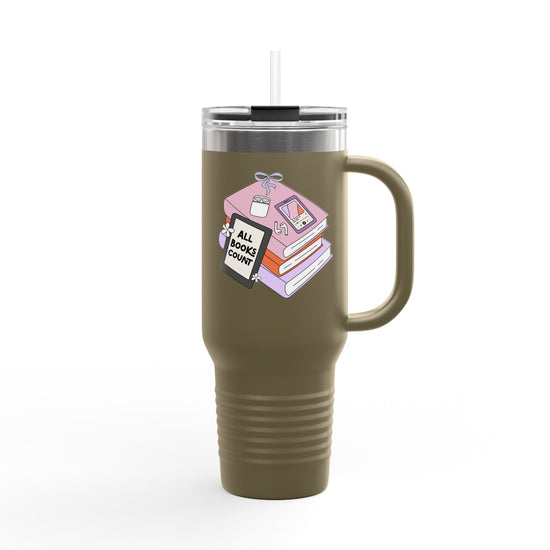 At Fandom-Made.com, we believe in celebrating fandom every day - which is why we created the All Books Count Insulated Tumbler. Made from durable stainless steel, this 40-oz tumbler is the ideal companion for bookworms who want to enjoy their favorite reads on the go. Whether you prefer audio, digital, hard covers, or paperbacks, this tumbler is the perfect way to show your love for all reading formats.