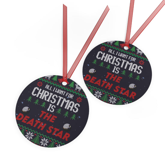 Add a touch of Star Wars magic to your Christmas tree with the Death Star Ornament from Fandom-Made.com. This unique ornament, available in round or oval shape, is the perfect gift for any fandomaniac. Let your love for the franchise shine with this inspired design, reminiscent of an ugly Christmas sweater. Give the gift of fandom this holiday season and show your true fan colors.