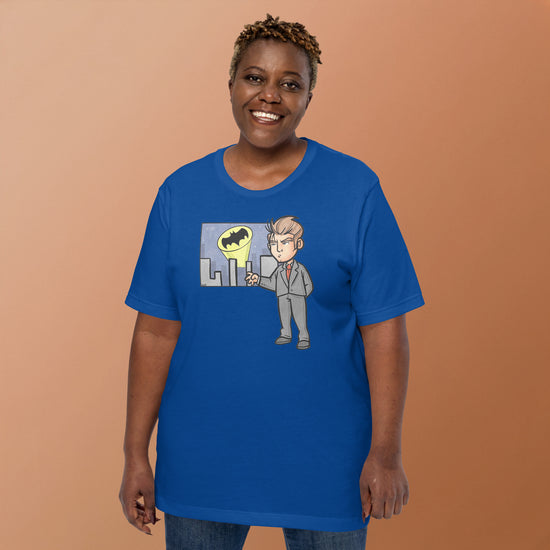 Elevate your fan game with the Bruce Wayne Unisex T-Shirt from Fandom-Made.com! Show your love for all things Bat-family with this stylish tee inspired by Robert Pattinson as The Batman. The adorable chibi design of Rob as Bruce Wayne adds a fun twist to your fandom wardrobe. Available in sizes XS to 5XL, this shirt is perfect for fandomaniacs who want to represent their favorite character every day. Because true fans show their love for fandom every day…