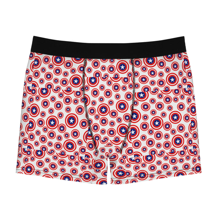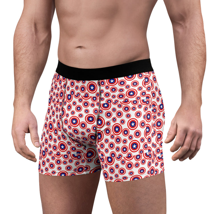 Unleash your inner superhero with our Cap boxer briefs, designed for true Captain America fans. The all-over print of his iconic shield makes these boxer briefs a must-have for any Marvel enthusiast. Show your love for fandom every day with these comfortable and unique boxer briefs. Join the league of superhero fans and get yours today!