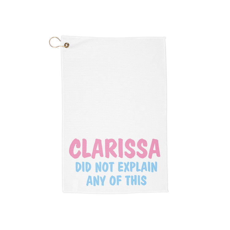 Calling all Fandomaniacs! Take your fandom to the next level with the Clarissa Didn't Explain It All golf towel. Made for fans of the iconic Melissa Joan Hart series Clarissa Explains It All, this high-quality towel is a must-have for anyone looking to show their love for fandom every day. Stay stylish and dry on the course with this unique accessory.
