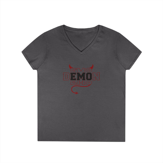 Elevate your demon-loving style with our Emo Demon Ladies' V-Neck Tee from Fandom-Made.com. Perfect for Halloween or any day you want to show off your emo side, this tee features devil horns and a fierce design that's sure to turn heads. Join our community of fandomaniacs and show the world your love for all things devilish and dark.