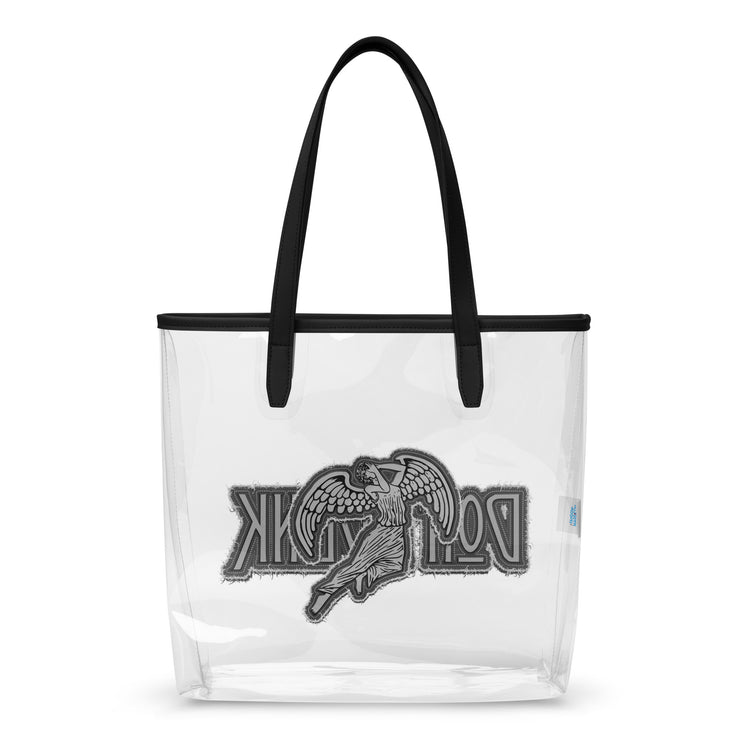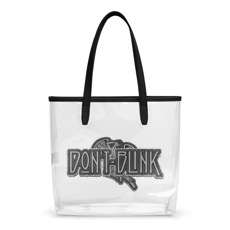 Looking for a stylish way to display your love for fandom? Look no further than the Don't Blink Clear tote bag! This chic accessory is inspired by The Weeping Angels in Doctor Who and features a "Flat-To-The-Touch" embroidery design with a double-sided design. One side showcases a weeping angel and the other side boldly states, "Don't Blink." Whether you're heading to a convention or simply out and about, this tote bag is the perfect way to show off your fandom every day.