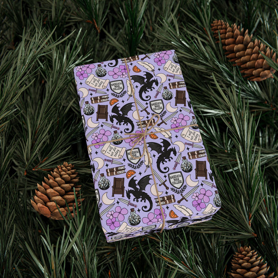 Elevate your gift wrapping game with our Fourth Wing Collage Wrapping Paper from Fandom-Made.com! Available in three sizes and finishes, this wrapping paper is perfect for bookworms and fandomaniacs alike. Show your love for The Empyrean Series by Rebecca Yarros every day with this unique design. Makes a great gift for any true fan!