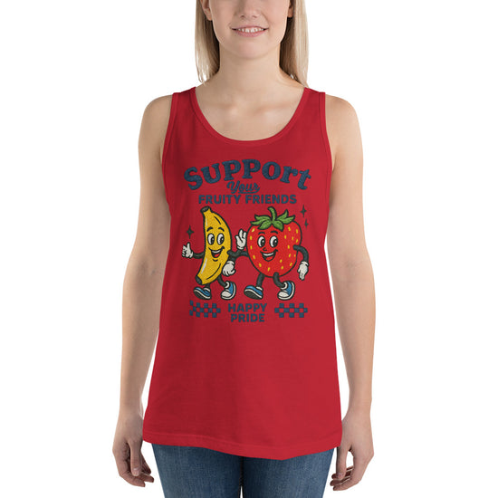 Elevate your summer wardrobe with our Fruity Friends Tank Top! This unisex tank is perfect for showing your love for the fandomaniacs in your life. Whether you're a proud Ally or just love supporting your fruity friends, this lightweight top is a must-have. Wear it to celebrate Pride or simply to showcase your love for fruits every day.