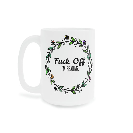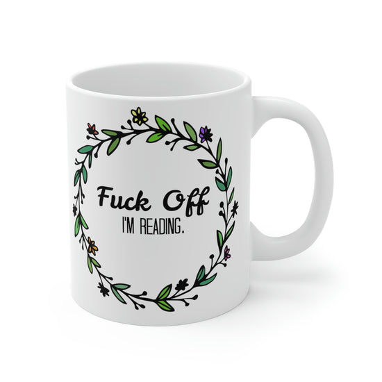Add some mojo to your morning joe with our 'Fuck Off, I'm reading' coffee mug. Choose among our 11oz, 15oz, or 20oz sizes – all come with a scratch-resistant finish and are ideal for any beverage.