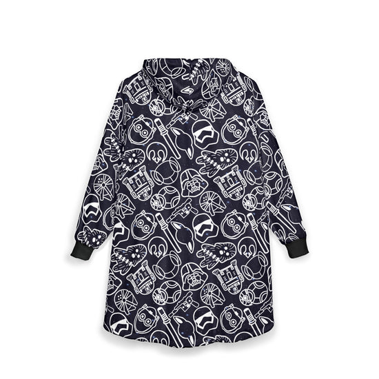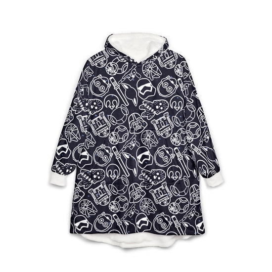 Calling all Fandomaniacs! The Galactic Rebellion Unisex Hooded Blanket is a must-have for any true fan of Star Wars. This one-size blanket is perfect for cozying up and showing your fandom love every day. With an all-over print design, this blanket is a standout gift for any fan of the Galactic Rebellion.