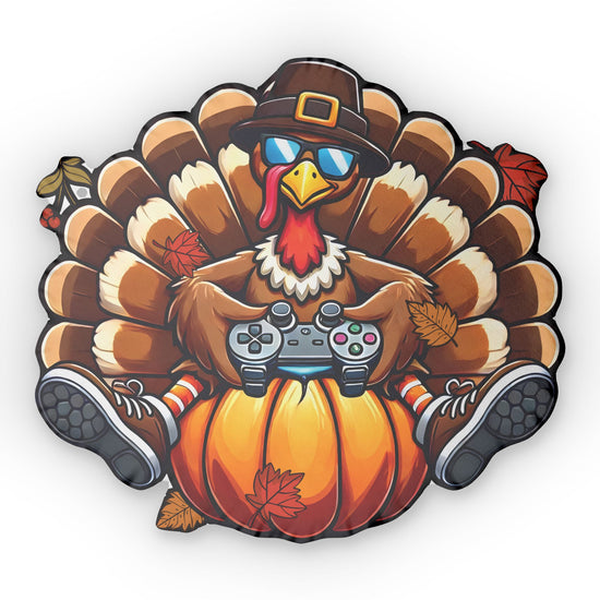 Fandom-Made.com - because true fans show their love for fandom every day… Calling all fandomaniacs and gamers! Elevate your Thanksgiving decor with our unique Gaming Turkey-Shaped Pillow, available in four sizes. This one-of-a-kind throw pillow features a turkey holding a gaming controller, perfect for showcasing your love for gaming every day.