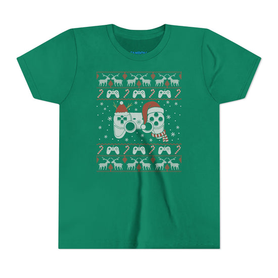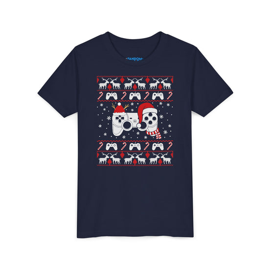 Give the gift of fandom with our Gaming Ugly Christmas Youth Tee, exclusively from Fandom-Made.com. Perfect for young gamers who live and breathe their favorite games, this kid's t-shirt features a fun Ugly Christmas sweater design that screams holiday cheer. Available in sizes S to XL, your child can celebrate their passion for gaming every day.