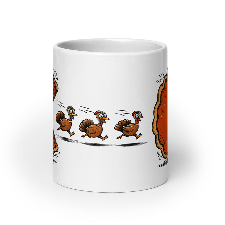 Get ready to gobble your way through the holiday season with the Gobble Gobble Gobble Mug from Fandom-Made.com - because true fans show their love for fandom every day. This fun and festive mug is perfect for all you fandomaniacs out there who want to celebrate Thanksgiving and Christmas in style. With Pac-Man reimagined as a pumpkin pie gobbling up turkeys instead of ghosts, this mug is sure to bring a smile to your face every time you take a sip.