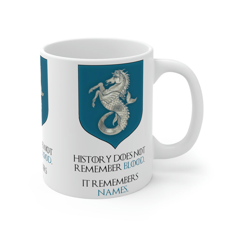 Add some mojo to your morning joe with our House of Velaryon coffee mug. Choose among our 11oz, 15oz, or 20oz sizes – all come with a scratch-resistant finish and are ideal for any beverage. The easy-grip handle makes for a smooth drinking experience while the durable white ceramic body is the perfect canvas for all your photos and art.