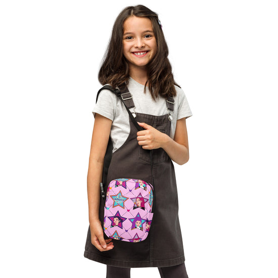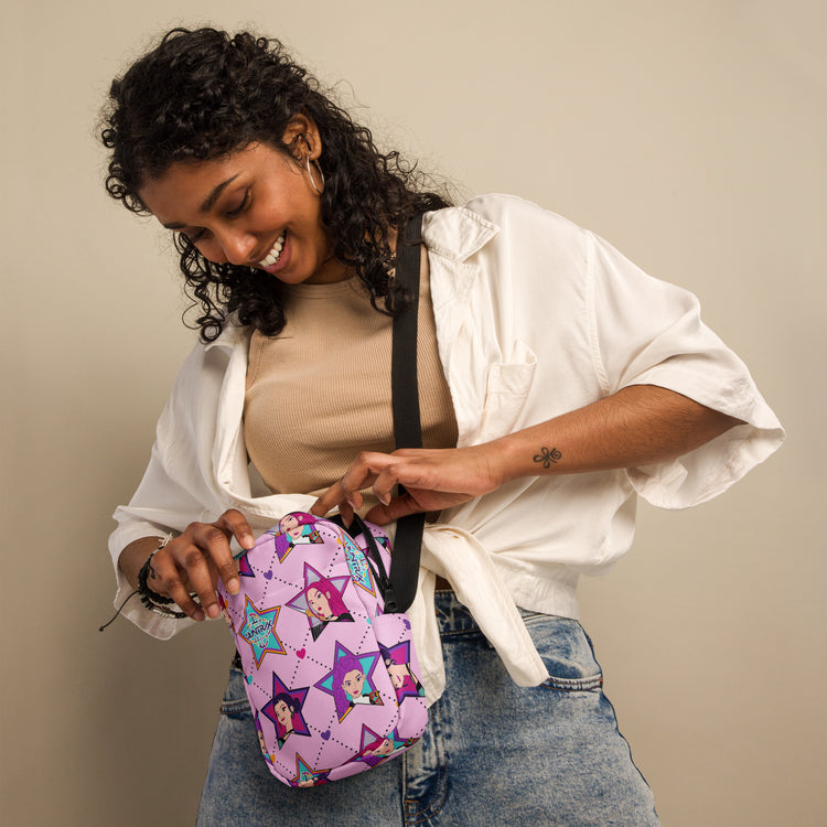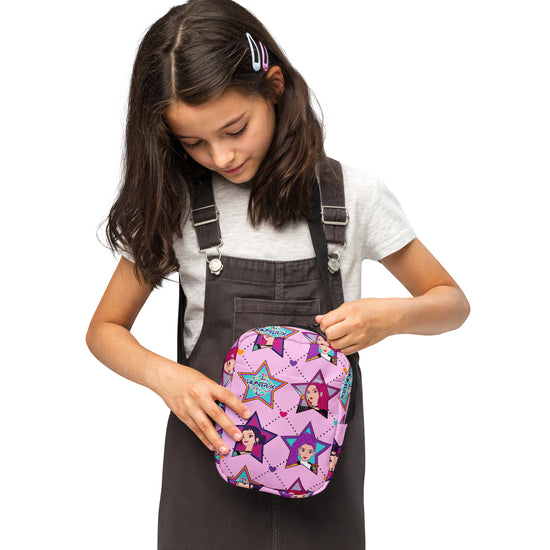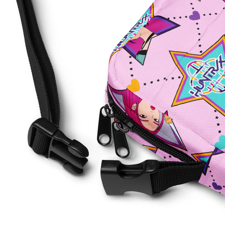 Elevate your style with the Huntrix Crossbody Bag from Fandom-Made.com - because true fans show their love for fandom every day. Perfect for all fandomaniacs, this one-size bag features an all-over print inspired by Huntrix, KPop Demon Hunters, Mira (May Hong), Zoey (Ji-young Yoo), and Rumi (Arden Cho). Show off your passion for your favorite characters in a chic and practical way.