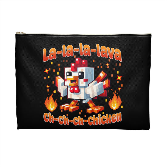 Introducing the La la la Lava Chicken Pouch, the ultimate accessory for all Fandomaniacs out there! Show your love for fandom every day with this stylish and functional pouch inspired by Minecraft's iconic Lava Chicken. Whether you use it for your makeup, stash bag, or pencil pouch, this versatile accessory is perfect for back-to-school season.