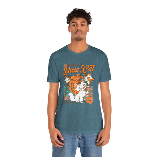 Show off your fandom pride with the Life of a Show Cat Unisex T-Shirt! Inspired by Ms. Swift's album and Disney's The Aristocats, this shirt is a unique way to express your love for your favorite fandom every day. Available in a wide range of sizes from Sm to 3XL, this shirt is perfect for Swifties and fans of The Aristocats alike. Get yours today from Fandom-Made.com - because true fans show their love for fandom every day...