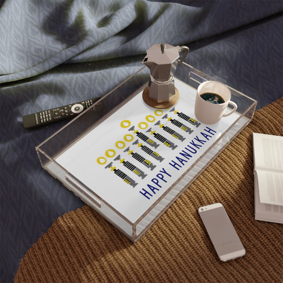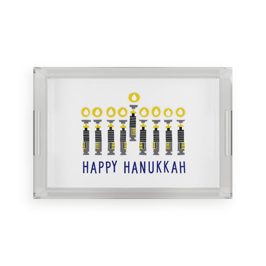 Looking for the perfect gift for the ultimate Star Wars fan? Look no further than our Lightsabers Menorah Serving Tray at Fandom-Made.com! This one-of-a-kind tray seamlessly merges the iconic lightsabers with the traditional Menorah, allowing fans to show their love for the fandom every day. With a generous size of 11" x 17", this tray is perfect for serving up holiday treats in style. Don't miss out on this opportunity to elevate your Hanukkah celebration!