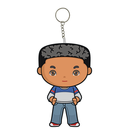 Elevate your fandom game with the Lucas Sinclair Mini Plush Keychain from Fandom-Made.com - because true fans show their love for fandom every day. This adorable 4” keychain is a must-have for all Stranger Things fandomaniacs, featuring a chibi design of Caleb McLaughlin as Lucas. Made with delicate craftsmanship, this keychain is both soft to the touch and durable, perfect for adding a touch of charm to your everyday life. Whether you attach it to your keyring or use it as a bag charm, this keychain is a great gift for yourself or any fellow fan.