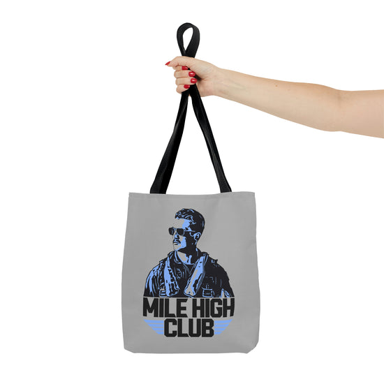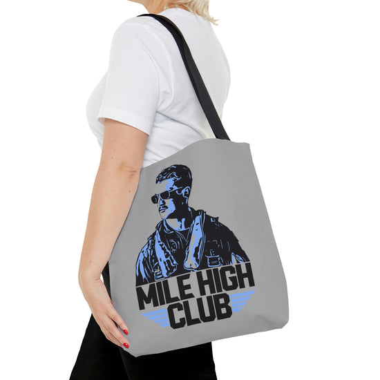 Have fun with our Maverick design. Our Mile High Club tote bag has an image of Rooster (Miles Teller) on the front and his nickname on the back. This practical, high-quality Tote Bag is available in three sizes. Made from reliable materials, it lasts for seasons.