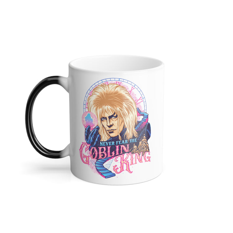Calling all Fandomaniacs! Embrace your love for all things magical with the Never Fear The Goblin King magic mug. Featuring a stunning double-sided design of David Bowie as The Goblin King from the cult classic Labyrinth, this mug is a must-have for any fan. Start your morning off right with a touch of fantasy and style!