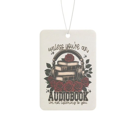 Elevate your car's style and show off your fandom every day with the Not Listening Car Air Freshener from Fandom-Made.com! Perfect for the die-hard fandomaniacs and audiobook lovers alike, this accessory is a fun and quirky addition to any car. Let everyone know where your priorities lie with the playful slogan "Unless You Are An Audiobook, I'm Not Listening to you" and proudly display it as part of our unique bookish collection.