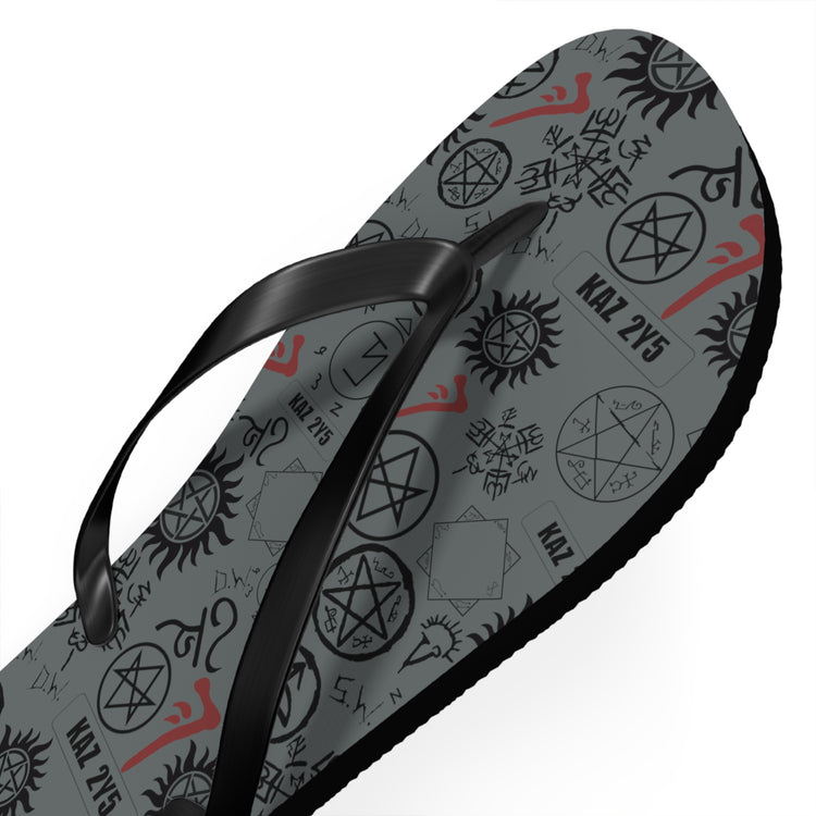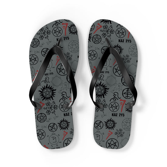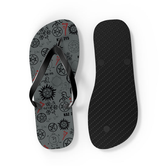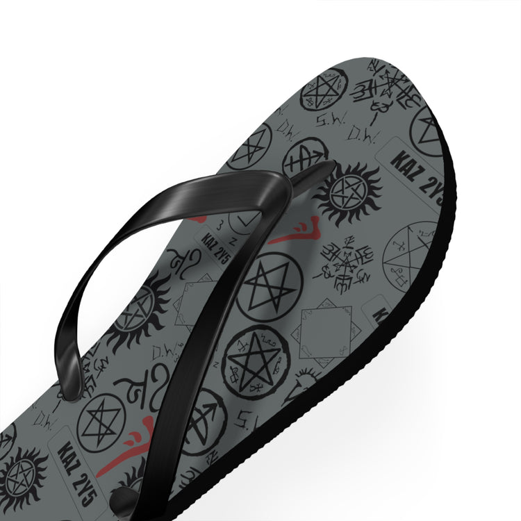 Step into style with our Supernatural Symbols All-Over Print Flip Flops! Featuring iconic symbols like the Mark of Cain, Anti-Possession, and Men of Letters. Stay comfortable and show off your love for the hit show Supernatural wherever you go.