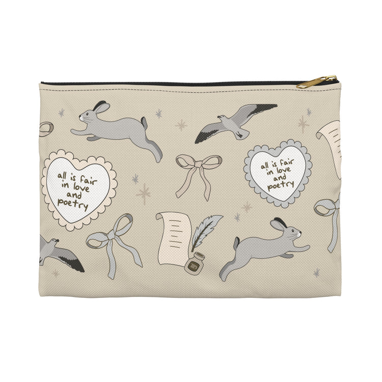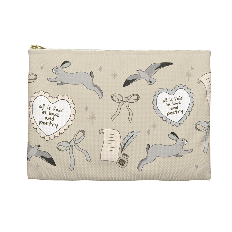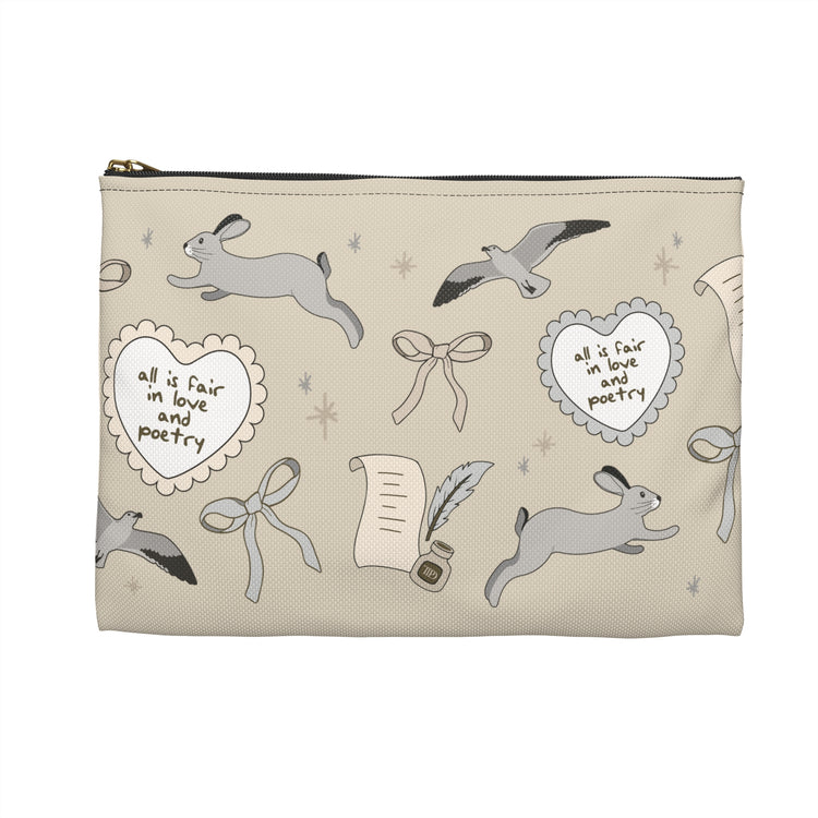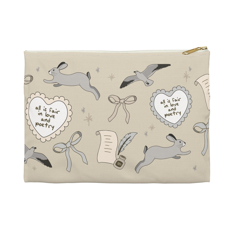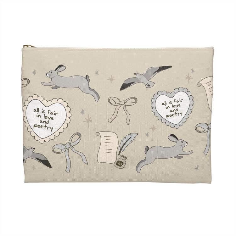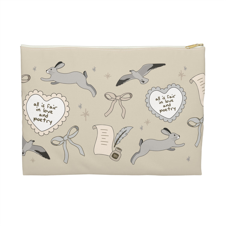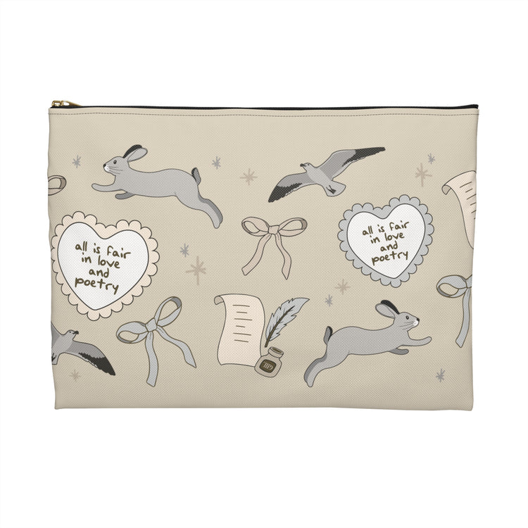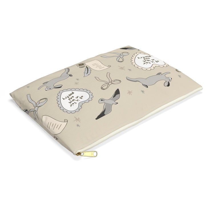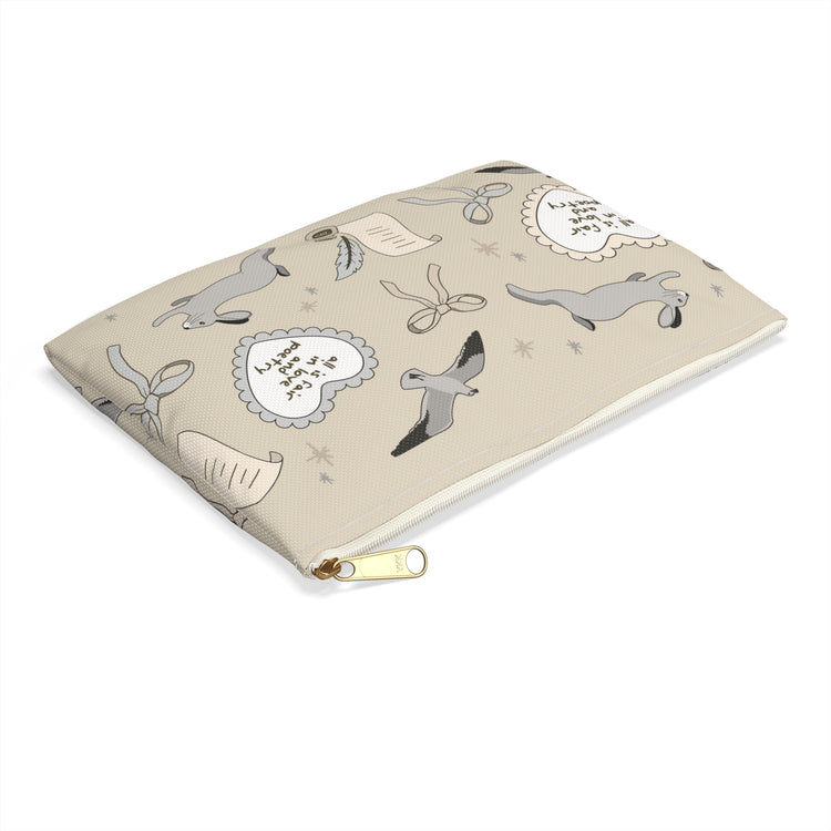 This Tortured Poet All-Over Print Pouch is the perfect accessory for any Taylor Swift fan! Carry your essentials in style with this unique pouch featuring a design inspired by the singer's iconic lyrics.