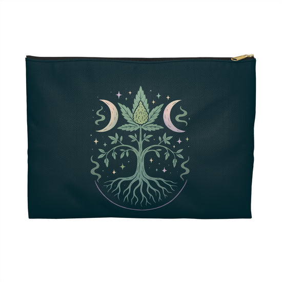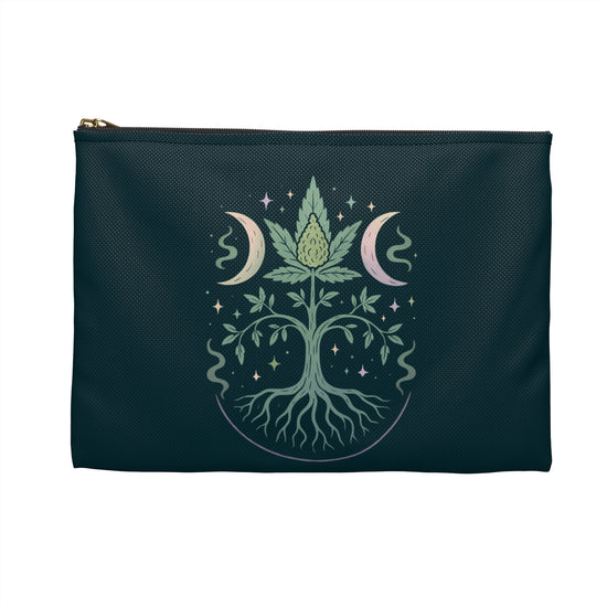 "Elevate your accessories game with the Tree Of Green Pouch from Fandom-Made.com - because true fans show their love for fandom every day… Whether you're a die-hard fandomaniac or just someone who appreciates cannabis culture, this pouch is the perfect addition to your collection. Available in 2 different sizes, use it to store your makeup, stash your essentials, or keep your pens and pencils organized. Like the tree of life but with weed, this pouch is a versatile and stylish accessory."