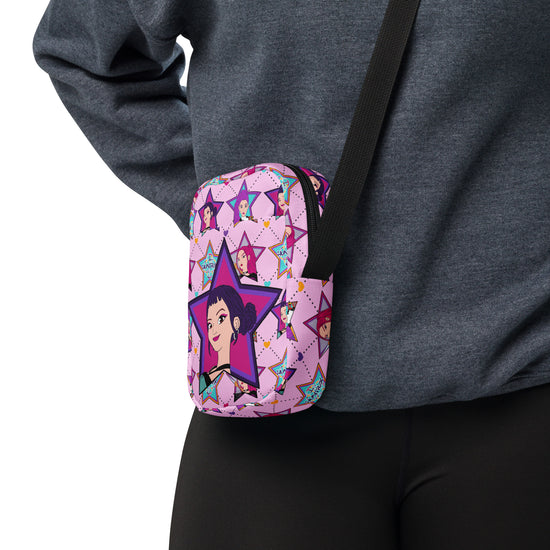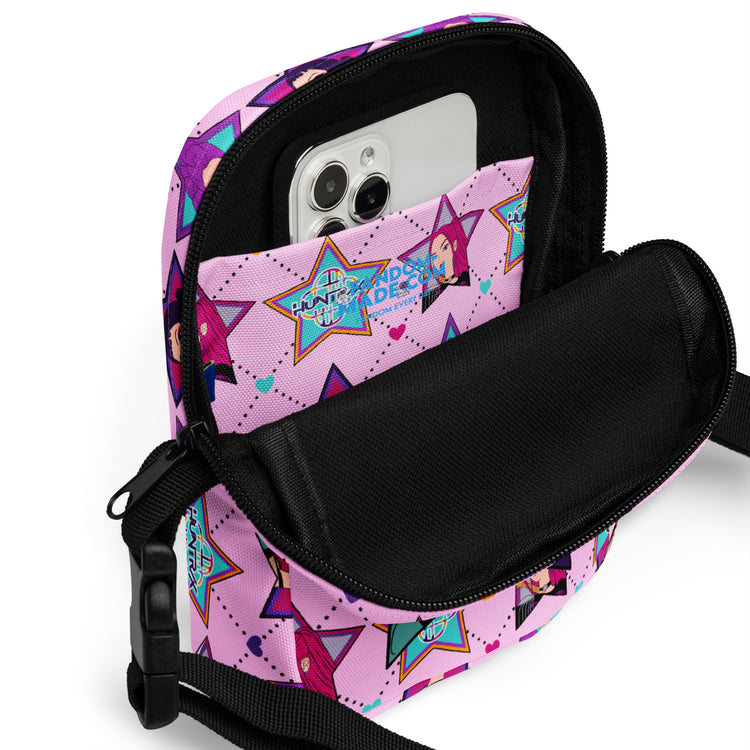 Make a statement with the Zoey (Ji-young Yoo) Star Crossbody Bag - a must-have accessory for any true fan. Designed for those who live and breathe fandom, this one-size bag features an all-over print of Huntrix, inspired by KPop Demon Hunters. Whether you're heading to a convention or just running errands, this bag is perfect for fans of all ages. Show your love for fandom every day with this stylish and functional crossbody bag.